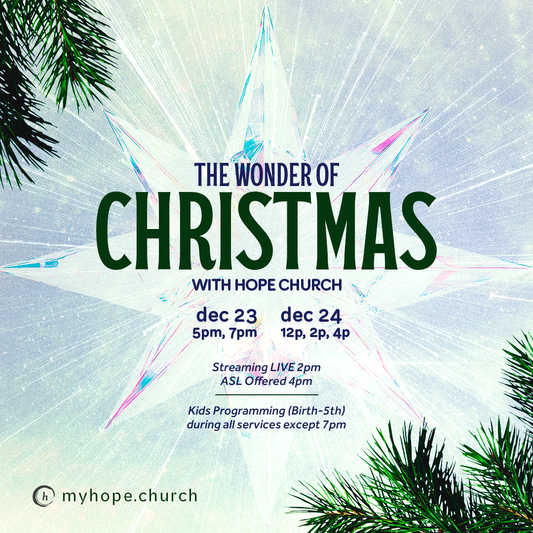 Experience Christmas with Hope! Enjoy contemporary worship, a meaningful message from our pastoral team and a quiet candlelight moment. Offering 5 identical services, we hope you can join us on campus, online or on YouTube.