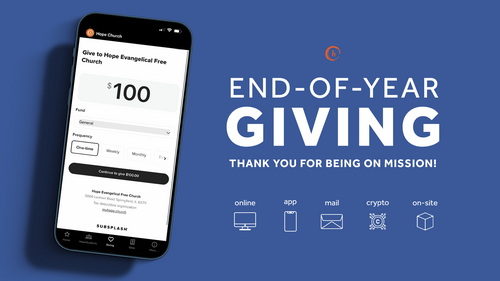 • Online giving through Subsplash will need to be dated December 31, 2024, or earlier. - You can save taxes by donating appreciated property such as stocks and grain.